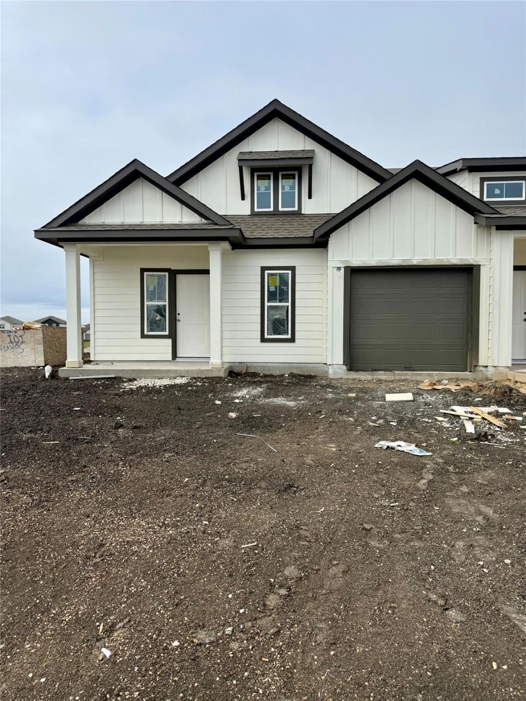 New Dream Finders Home! Welcome to this beautifully designed one-story duplex offering 1,532 sq ft with 3 bedrooms and 2 bathrooms and a one car attached garage. The home features an open-concept layout which seamlessly connects the kitchen, dining, and living areas, creating a bright and functional space perfect for everyday living and entertaining. The kitchen showcases modern graphite black cabinetry, generous counter space, and a large island overlooking the living area. Luxury vinyl plank flooring runs throughout the main living spaces, with comfortable carpeting in the bedrooms. The private primary suite is thoughtfully separated from the secondary bedrooms and includes a dual-sink vanity, spacious walk-in shower, private water closet, large linen closet, and walk-in closet. Additional highlights include a one-car garage with extra storage space, abundant natural light, and a smart split-bedroom layout designed for comfort and privacy.