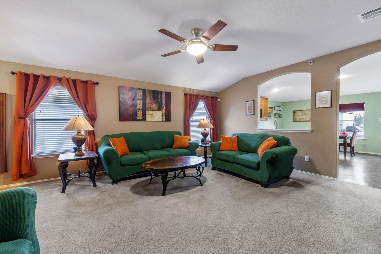 SEE VIDEO TOUR linked or google the address!! This is the rare bird, extremely optioned, single story, backing to a green space, huge bedrooms, and immaculately taken care of by its original owner home that you have been looking for! Located in the Creek Bend neighborhood with trails and a pool with a 25 yard lap, and just minutes from Samsung and the rapidly expanding Co-op, this home has so much going for it. Upgrades include: Fresh paint and deep clean to make it spotless and move in ready; 2.5 car garage with epoxy floors, added lighting, and a 240v outlet for all of your hobbies; wifi garage opener; and dedicated 120v-30a and 240v-50a circuits; 3 sides brick; full sprinklers; full insulation package (bedrooms, bathrooms, and laundry room are insulated; 5.1 surround sound wired; AT&T fiber internet; 42 cabinets; convection oven; frameless primary shower glass; cultured marble counter tops; a freshly stained back fence; it does not get better than this! Appliances are negotiable. Dont miss your chance at this one!