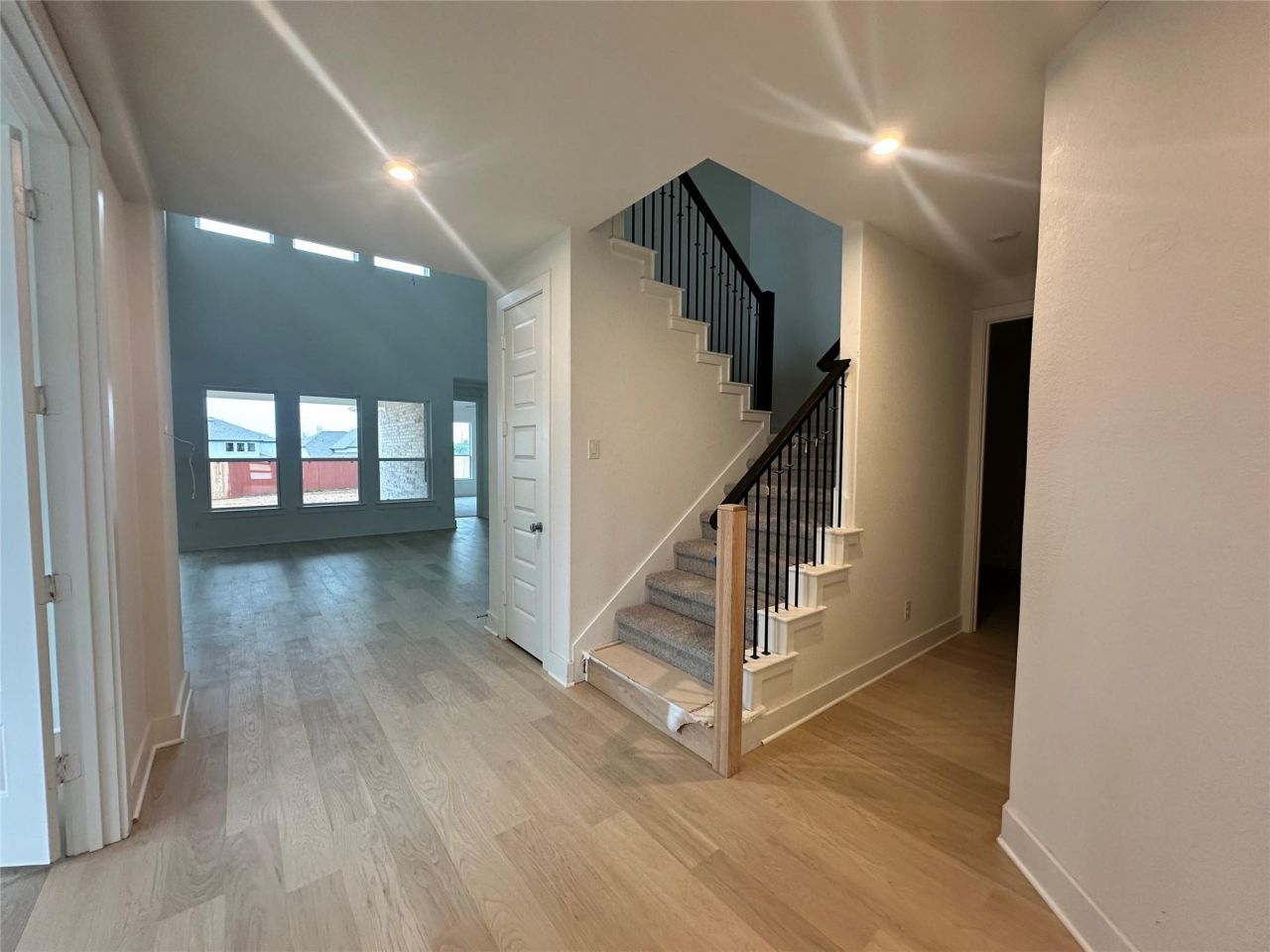 New Coventry Home! Welcome to the Kendall II?a beautifully designed home featuring soaring two-story ceilings in both the foyer and great room, creating a dramatic and inviting first impression. Durable and stylish RevWood flooring flows throughout all main-level common areas, leading into a chef-inspired kitchen complete with shaker-style cabinetry, built-in stainless steel appliances, a custom tile backsplash, and elegant quartz countertops. The expansive eat-in island seamlessly connects to the great room, where a striking floor-to-ceiling tiled fireplace becomes the focal point of the space. The private primary suite offers a spa-like retreat with a garden tub, walk-in shower, and an oversized walk-in closet. A secondary bedroom and full bath are thoughtfully positioned near the front of the home, separated by a full-sized study?ideal for remote work or quiet focus. Upstairs, the spacious game room overlooks the great room below and flows into a dedicated media room pre-wired for surround sound. Bedroom three features its own en-suite bath and walk-in closet, while bedroom four enjoys a private bath just outside its door. Enjoy outdoor living on the extended Texas-sized covered patio that opens to a generously sized backyard?perfect for entertaining or relaxing in privacy. Additional storage is available with the optional 5' garage extension. Come see why so many are choosing to call Sauls Ranch East home?schedule your tour today! ** Ask us about our low interest rates & special financing! Visit Onsite for details ? subject to change without notice. **