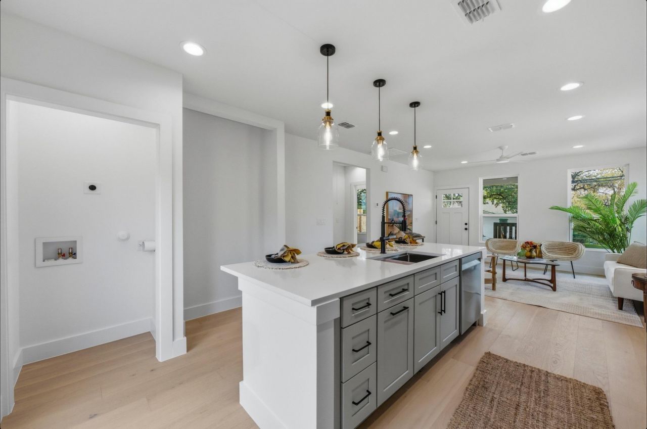 Refined modern living in 78702Welcome to 1199 Coleto St, a beautifully designed new construction home in East Austin offering 2 bedrooms, 2 baths, and 902 square feet of thoughtfully planned living space. The open-concept layout features a stylish combination of tile and wood flooring, complemented by recessed lighting and ceiling fans throughout.The modern kitchen is both functional and eye-catching, complete with a center island, workstation sink with rolling rack, and a full suite of stainless-steel appliances, including a gas oven and cooktop, refrigerator, microwave, and dishwasher?perfect for everyday living and entertaining.French doors off the kitchen lead to a private, fenced backyard and covered back porch, creating a seamless indoor-outdoor experience. Backyard is large enough to add a pool! The primary suite offers a peaceful retreat with an attached full bath featuring a luxurious steam shower finished in high-end Moroccan terracotta tile.With quality finishes, efficient design, and a prime 78702 location, this home delivers modern comfort and East Austin style. Pool capability must be verified by buyer