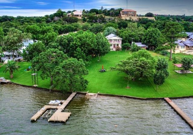 Fully furnished lakefront property currently operating as a successful short-term rental. Offers immediate income potential for investors or the flexibility to use as a private lake retreat for family and friends. Come take a look and see why the views dont disappoint! The 3 bed / 3 bath lake house sits perfectly positioned on Inks Lake with 96 feet of open waterfront and expansive lake views across to Inks Lake State Park. The gently sloping lawn with bare foot grass and large trees for shade, stretches over 90 yards from back porch to water. Step into the clear inviting swim area with shallow water gently sloping deeper. Clear, firm sandy bottom with no rocks or weeds. Outdoor living is designed for lake life with a porch, balcony, and a large lakeside patio with cozy fire pit. The large low-profile dock preserves the beautiful open water views and includes an underwater 6,500 lb hydraulic boat lift (can accommodate a 23-foot wake surf boat) along with two hydraulic PWC lifts. Just step into your boat, push a button and drive away. The property also includes a 10 x 12 storage shed for water toys plus, an additional shed for tools/equipment and LCRA water permit for yard irrigation, with complete sprinkler system. RV hookups out front.Located in the desirable Buena Vista community on the 831-acre Inks Lake, known for consistent water levels and excellent boating, fishing, paddleboarding, kayaking, and jet skiing. The neighborhood has its own water system and allows short-term rentals, making this a strong opportunity for investors or buyers looking for a private lake retreat or income potential.