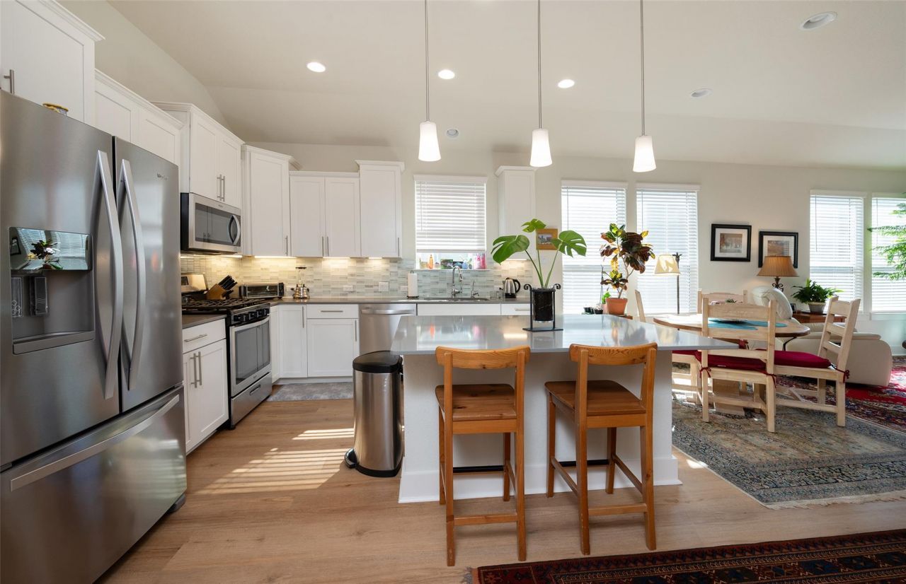Rare opportunity to assume a 2.5% mortgage on this beautifully maintained home in the highly desirable Sunfield master-planned community in Buda. Thoughtfully upgraded and designed for comfortable everyday living, the home offers modern finishes, inviting spaces, and access to outstanding neighborhood amenities just minutes from Austin.Inside, 10-foot ceilings and luxury vinyl plank flooring create a bright, open feel throughout the main living areas. The kitchen serves as the heart of the home, featuring staggered shaker-style cabinetry, quartz countertops, upgraded backsplash, pendant lighting, and a large center island that flows seamlessly into the dining and living spaces?perfect for entertaining or relaxed daily living. Craftsman-style trim, five-panel interior doors, and ceiling fans throughout add both style and comfort.The primary suite with 10-foot ceilings offers a spa-like retreat with a spacious walk-in shower featuring custom tile, rain shower head, handheld wand, and built-in bench. Additional upgrades include a whole-house water softener and reverse osmosis drinking water system.Outside, enjoy easy-care landscaping with a full irrigation system.Sunfield residents enjoy resort-style amenities including multiple pools, two lazy rivers, splash pad, fishing ponds, and scenic hike and bike trails. Conveniently located with quick access to I-35 and SH-130, and approximately 11 miles to Lady Bird Lake and downtown Austin, offering the ideal blend of neighborhood living and city convenience.