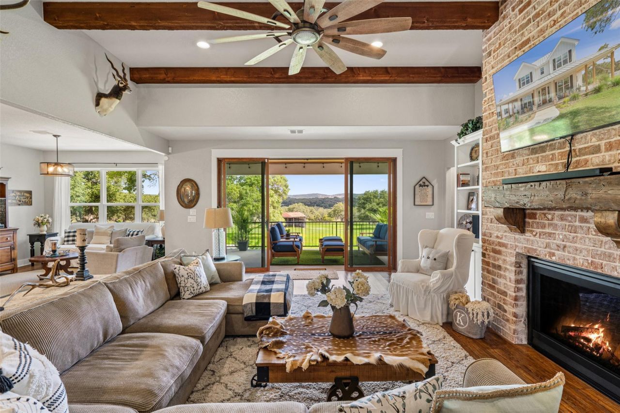 The Thirsty Goat Ranch offers 61 +/- AG-exempt acres of classic Texas Hill Country charm with just the right amount of personality. Tucked away off the highly sought-after McKinney Loop on McKinney Creek, this gentlemans ranch delivers sweeping panoramic views, mature trees, and the kind of peaceful setting people usually say they want but rarely find.Majestic live oaks frame the property, while a scenic pond attracts local wildlife and adds to the relaxed country atmosphere. The acreage is fully perimeter-fenced, offering privacy and space to enjoy the natural surroundings.The 2020-built home features 4 bedrooms, 4 full bathrooms, and a 3-car garage, along with barns and generous storage. Inside, the open floor plan welcomes abundant natural light, with a dedicated office and a downstairs primary suite complete with a walk-in closet and private bath. Upstairs guest bedrooms offer beautiful Texas Hill Country views that make mornings a little easier.Outdoor amenities include your own pickleball court, a rustic guest space separate from the main house, and RV/boat storage alongside additional barns, a chicken coop, and hay storage for livestock. For hunting enthusiasts, the ranch is already equipped with automatic deer feeders and blinds, plus a seasonal creek and two tanks that support the natural landscape.Conveniently located just 55 miles from both Austin and San Antonio, this property sits in one of the fastest-growing areas in the country?while still offering the privacy, space, and scenery that make Hill Country living so appealing.