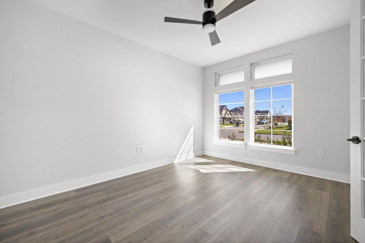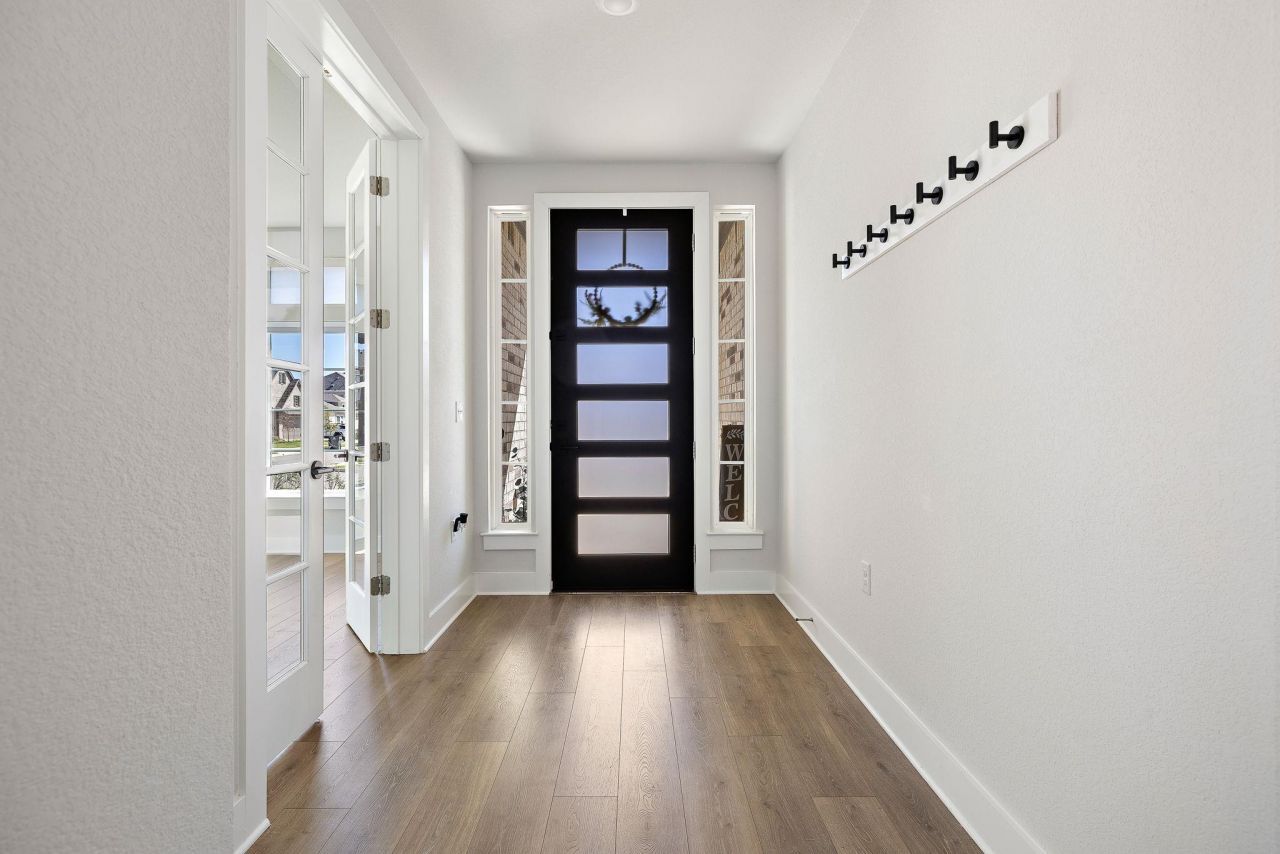 Welcome to this beautifully maintained, nearly new home in the desirable Anthem community of Kyle. Just one year old, this thoughtfully designed home offers the benefits of new construction plus over $6,000 in upgrades already completed. Inside, soaring ceilings and an open, light-filled floor plan create an inviting space for everyday living and entertaining. The kitchen opens seamlessly to the living area and features under-cabinet lighting, upgraded fixtures, and modern finishes. The functional layout includes 4 bedrooms plus a dedicated office, with the primary suite and office on the main level and three additional bedrooms upstairs, providing flexible space for guests, family, or work-from-home needs. Numerous upgrades throughout include ceiling fans, dimmable lighting, upgraded door hardware, cabinet pulls, and custom window shades. The home also features reverse osmosis, whole-house water filtration, and a water softener for added comfort. Step outside to enjoy a truly special setting?the backyard backs to privately owned, heavily wooded land held in a trust and protected by a conservation easement, creating a peaceful, preserved natural backdrop with added privacy. Located in the growing Anthem community with convenient access to Austin, shopping, dining, and parks, this move-in ready home offers upgrades, space, and privacy without the wait of new construction.