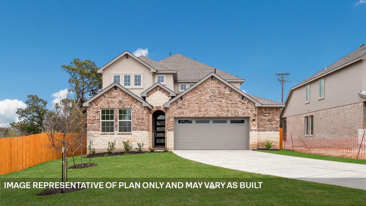ESTIMATED COMPLETION Introducing the Fitzgerald at Rosenbusch Ranch in Leander, TX. This beautiful two story home offers an impressive 2,962 sq. ft. of living space across 5 bedrooms, 3 bathrooms, and a 2-car garage. This plan includes a secondary bedroom and full bathroom downstairs at the front of the home. As you walk through the long foyer to the open layout of the home you will find the large kitchen is open to the spacious family room and dining area. The kitchen features Silestone® or quartz countertops, decorative tile backsplash, stainless steel appliances and a large kitchen island. The main bedroom, bedroom 1, is located downstairs and features a large walk in shower and huge walk in closet. Upstairs you will find a large game room along with the three other bedrooms and another full bathroom. This home comes included with a professionally designed landscape package and a full irrigation system as well as our America's Smart Home® package that offers devices such as the Qolsys IQ Panel, Video Doorbell, Alarm.com app, Honeywell Thermostat, Kwikset Smart lock, and more. JUNE. Images representative of plan only and may vary when built.