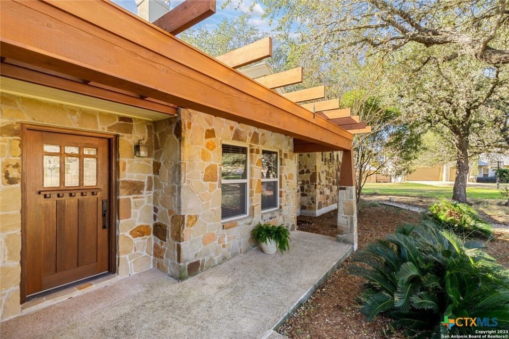 Beautiful custom home on a level 1.01acre oak studded golf course lot in the desirable River Crossing community. This light-filled home features an 18ft beamed ceiling, 12 clerestory windows, and Pella doors that frame peaceful views. The primarily one story layout includes a split bedroom design with a spacious main suite with dual walk-in closets, two secondary bedrooms, and a stud with full bath access. The study could be a bedroom with full closet and full bath access. A private upstairs guest suite/gameroom offers its own full bath and walk-in closet. The gourmet kitchen includes custom alder cabinetry, granite countertops, a European AGA range, pantry, butler's pantry, and bar area. Outdoors, enjoy a fully landscaped yard with landscape lighting, a 12zone sprinkler system, a large flagstone patio, and a beautiful water feature with four waterfalls. The home is adjacent to the River Crossing Golf Course for added privacy and scenic appeal. Additional highlights include a 3car side entry garage, walkable access to the private River Park along the Guadalupe River, and excellent Comal ISD schools. Move-in ready and impeccably maintained, this home offers the full Hill Country lifestyle.