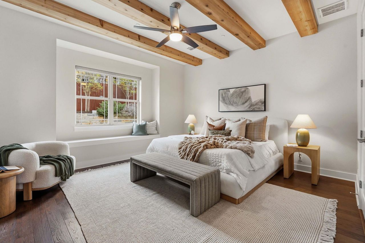 Set on a 0.39-acre property in Westlake, this thoughtfully designed 4-bedroom, 3.5-bath home offers a well-balanced floor plan, flexible living spaces, and sweeping Hill Country views. Spanning 2,507 square feet, the home features a functional layout with the primary suite on the main level, along with a dedicated office, powder bath, and an inviting main living area filled with natural light. The living space flows seamlessly into the kitchen and dining areas, creating an ideal environment for both everyday living and entertaining. The main-level primary suite provides a private retreat with a spacious bath and generous closet space, while the dedicated office offers a quiet workspace tucked away from the main living areas. Upstairs, three secondary bedrooms, two full bathrooms, and a spacious second living area offer flexibility for guests, family, or additional gathering space. A covered balcony extends from the upper level, capturing expansive Hill Country views and providing a peaceful setting to relax or entertain. The fully fenced property offers privacy and room to enjoy the outdoors, with space for recreation, pets, or future enhancements. Located within the highly sought-after Eanes ISD and just minutes from Barton Creek Country Club, Westlakes shopping and dining, and convenient access to downtown Austin, this home offers the opportunity to enjoy Hill Country surroundings while remaining close to the city.